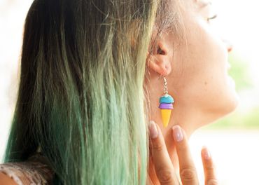 - Delicious Icecream Earrings Material Pendant: Polymer Clay Polymer Clay hooks and eyes: silver plated length of the pendant (without hooks) : 38mm Content: 1 pair of earrings li>