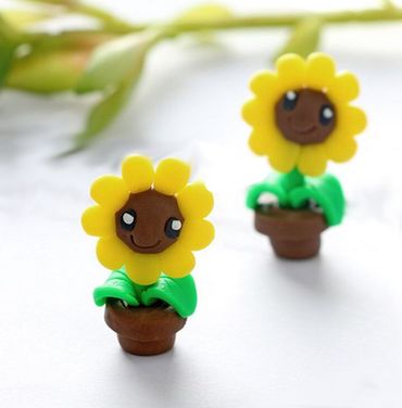 - Quirky "laughing sun flower in a pot" ear studs. Material motive: polymer clay Motive size (longest side): 30mm Content: 1 pair of ear studs li>