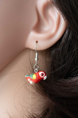 - Funny earrings with red budgie. - Material pendant: ceramic - hook and eyelet: silver -plated - length of the pendants (without hook): 16mm - scope of delivery: 1 pair of earrings