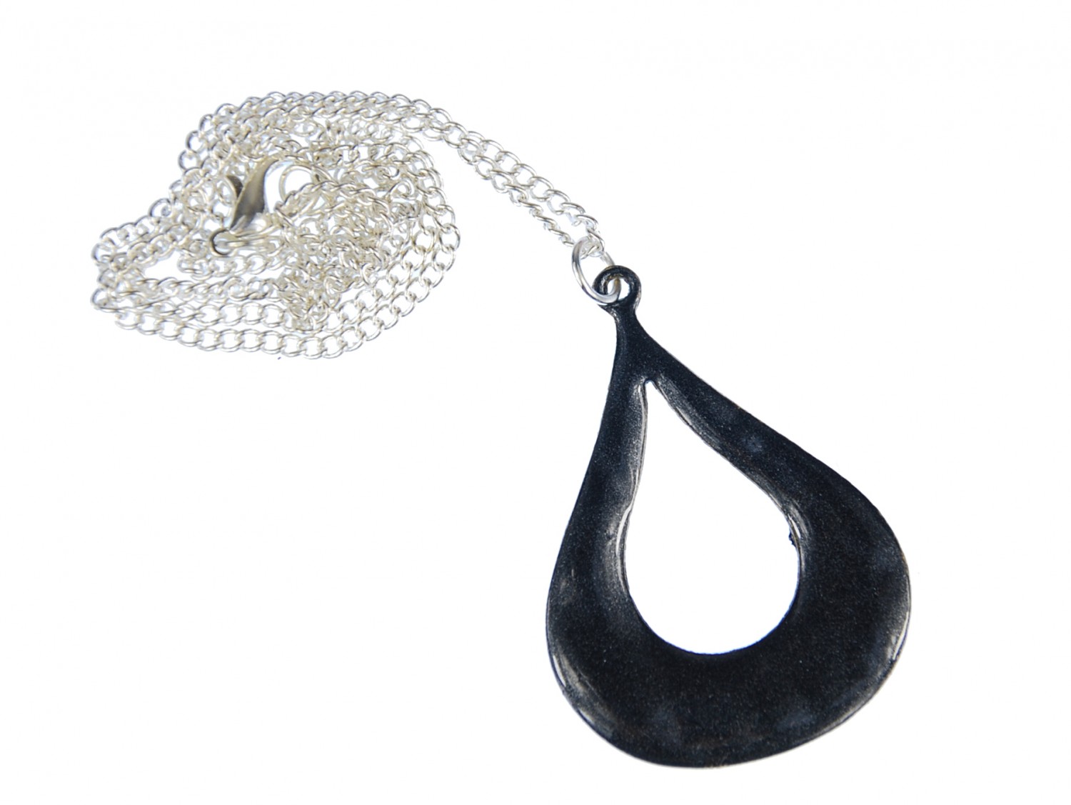 Tropfen Emaille Halskette Miniblings Kette 45cm Emaille schwarz grau Form Indien