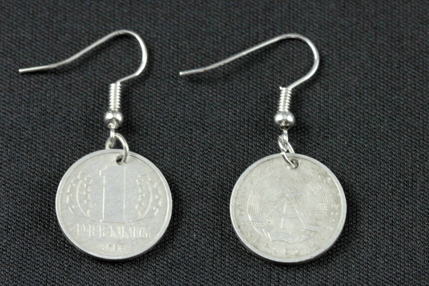1 DDR Pfennig Münze Ohrringe Miniblings Ohrhänger Geld Ostalgie Glückspfennig neu