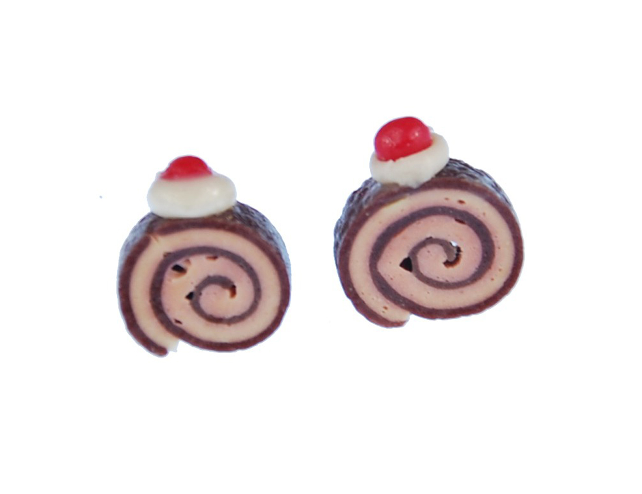 Biskuitrolle Ohrstecker Miniblings Stecker Ohrringe Kuchen Biskuit Biscuit BRAUN